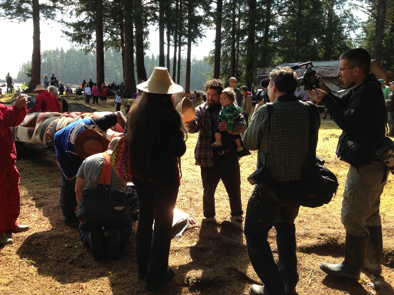 Jaalen carved the pole in 2012/2013 at the Haida Heritage Centre at Kaay Llnagaay. As the time of the raising approached, Parks transported the pole to Windy Bay in Gwaii Haanas by barge and the carving continued at the Watchmen site. International media were present for the pole raising, including the New York Times, and a live stream of the raising was broadcast on the internet. Around 400 people made the journey down to Windy Bay to be present for the raising, and over the streaming several thousand people viewed the event.